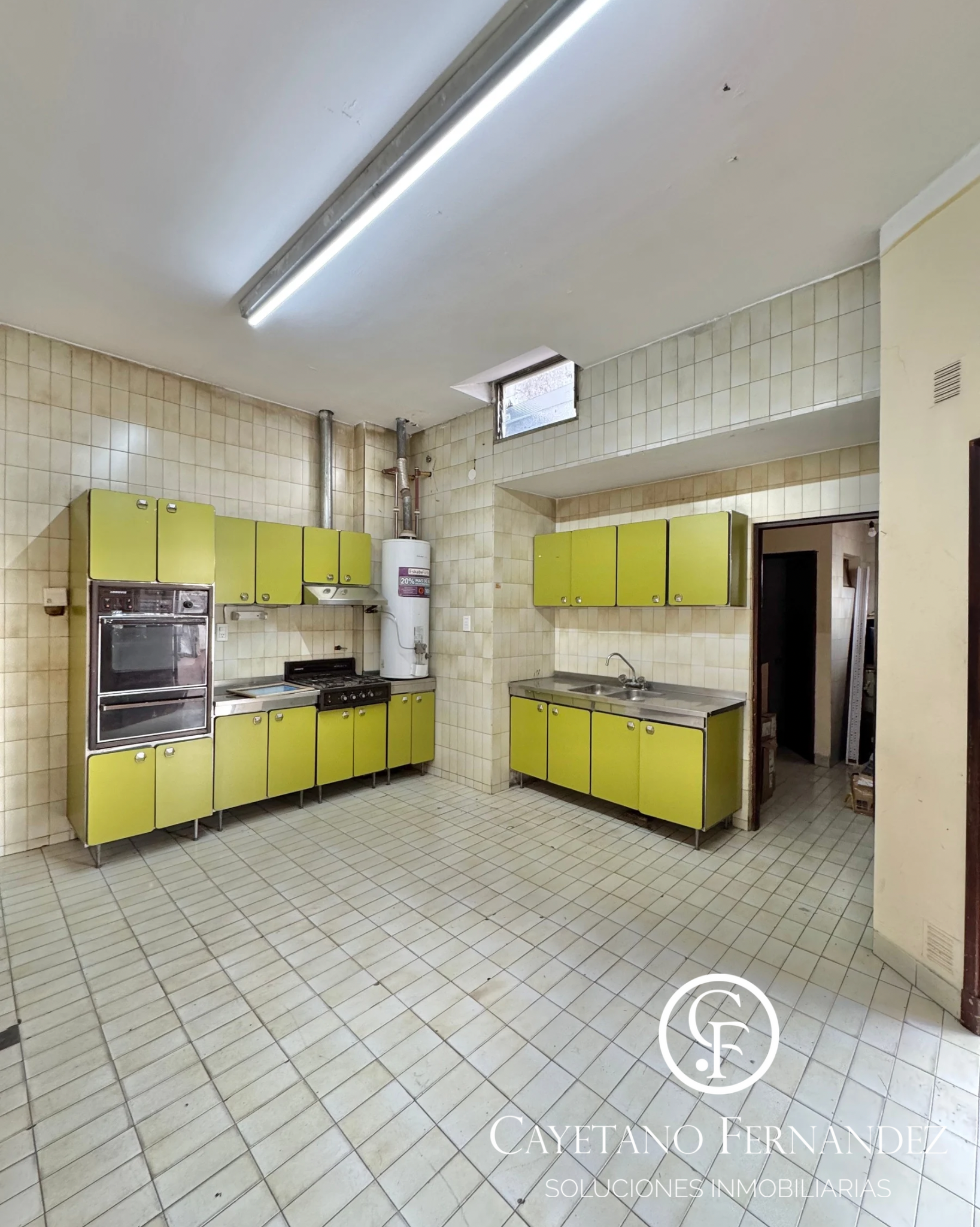 •🍳 Cocina grande con termotanque, cocina a gas, alacenas y bajo mesada